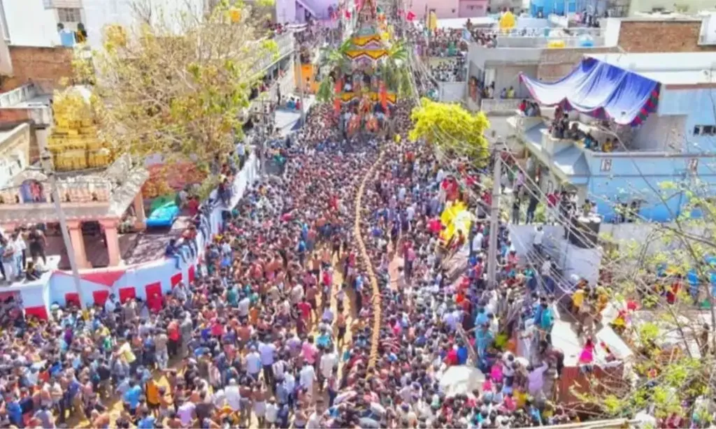 అనంతపురం జిల్లాలోని ప్రముఖ పుణ్యక్షేత్రం కదిరిలో వెలసిన శ్రీమాత్ ఖాద్రి లక్ష్మీనరసింహస్వామి బ్రహ్మరథోత్సవం అంగరంగ వైభవంగా జరిగింది. స్వామివారి వార్షిక బ్రహ్మోత్సవాలలో అత్యంత కీలకమైన రథోత్సవ వేడుకను వీక్షించేందుకు లక్షలాది మంది భక్తులు తరలివచ్చారు. నలుదిక్కుల నుండి తరలివచ్చిన భక్తజనం: ఈ రథోత్సవ వేడుకకు కేవలం ఆంధ్రప్రదేశ్ నుండే కాకుండా పొరుగు రాష్ట్రాలైన తెలంగాణ, కర్ణాటక, మరియు తమిళనాడు నుంచి భక్తులు భారీ సంఖ్యలో తరలివచ్చారు. "గోవింద.. నరసింహ.." నామస్మరణతో కదిరి పురవీధులు మారుమోగాయి. భక్తుల తాకిడితో పట్టణం మొత్తం జనసంద్రంగా మారింది.