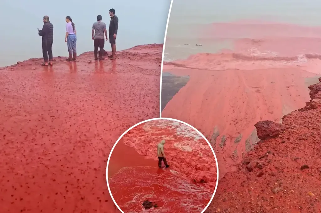 హార్ముజ్ ద్వీపం (Hormuz Island) తీరం రక్తపు రంగులోకి మారడం అనేది ఒక అద్భుతమైన సహజ భౌగోళిక ప్రక్రియ. ఈ ద్వీపంలోని మట్టిలో హెమటైట్ (Hematite) అనే ఐరన్ ఆక్సైడ్ ఖనిజం చాలా ఎక్కువగా ఉంటుంది. వర్షం పడినప్పుడు, ఆ నీరు కొండల నుండి ప్రవహిస్తూ ఈ ఎర్రటి మట్టిని సముద్ర తీరానికి తీసుకువస్తుంది. దీనివల్ల తీరం వెంబడి నీరు ముదురు ఎరుపు రంగులోకి మారి, చూడటానికి రక్తంలా కనిపిస్తుంది.