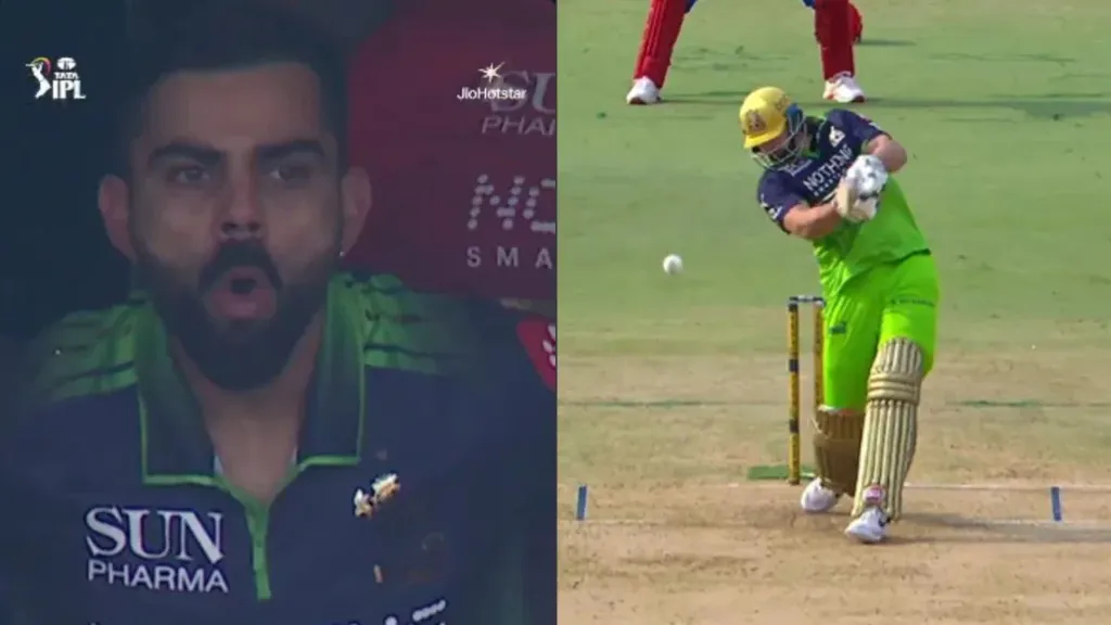 చిన్నస్వామి స్టేడియంలో టిమ్ డేవిడ్ కొట్టిన కళ్లు చెదిరే సిక్సర్కు విరాట్ కోహ్లీ అవాక్కయ్యాడు. 12వ ఓవర్లో లుంగీ ఎన్గిడి వేసిన బంతిని డేవిడ్ ‘సైడ్ స్క్రీన్’ అవతలికి బాదడంతో, ఆ పవర్కు డగౌట్లో ఉన్న కోహ్లీ నోరెళ్లబెట్టి, సీట్లోంచి లేచి మరీ విస్తుపోయాడు. ఈ ‘షాకింగ్’ రియాక్షన్ వీడియో ప్రస్తుతం సోషల్ మీడియాలో విపరీతంగా ట్రెండ్ అవుతోంది!
